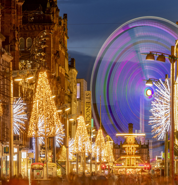 This year, Glasgow’s main festive activities will take place at Glasgow Green and St Enoch Square. Twinkling lights and attractions will transform part of Glasgow Green into an enchanted wonderland, complete with theatre performances in the Big Top, open-air skating, and traditional fairground rides. Visitors can pause for the perfect pit stop at the seasonal food and drink stalls.
